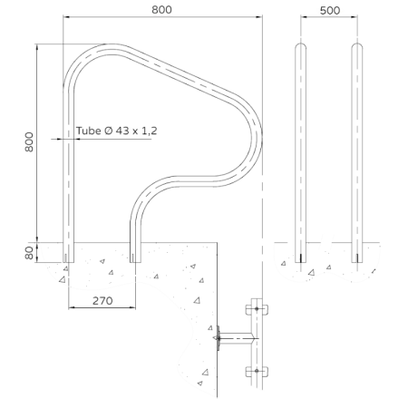2 mains courantes inox 316L poli Ø 43 (à sceller)