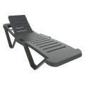 Chaise longue empilable pour intérieur et extérieur. Munie de roues arrières et d'un compartiment sur le côté droit pouvant recevoir un verre. Dossier réglable avec 5 positions. Jusqu'à 110 kg de capacité de charge.