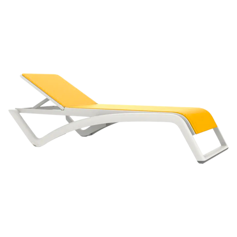 Bain de soleil empilable d'intérieur et d'extérieur. Structure en polypropylène renforcé avec fibre de verre. Inclinable sur 5 positions, dont une position extraplate idéale pour s’allonger. Dossier avec butée de sécurité. Roulettes sur pieds arrière et cales anti-dérapantes à l’avant et à l’arrière.