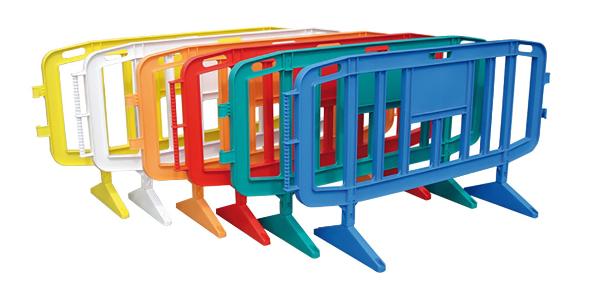 Barrière emboîtable et empilable, idéale pour la signalisation, la délimitation ou pour restreindre l'accès à des espaces.