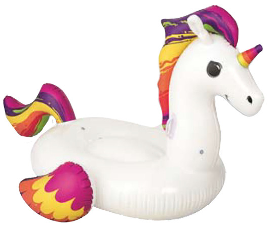 Bouée en forme de licorne, idéale pour les activités ludiques et les animations aquatiques.