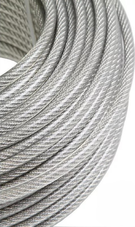 Câble souple gainé PVC cristal de Ø 2 mm et gainé Ø 3 mm, et composé de 7 torons de 7 fils en inox 316.