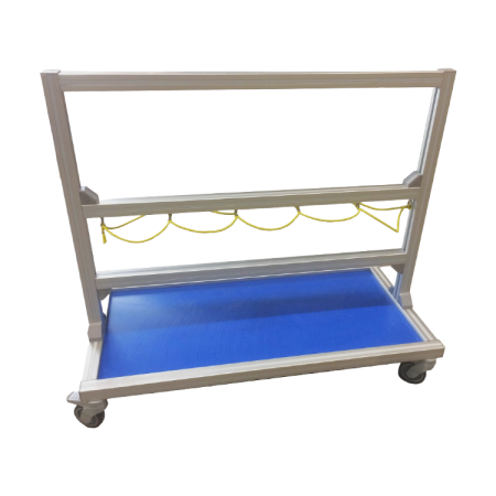 Constitué de crochets avec sandow, de 1 plateau inférieur et de 4 roues dont 2 avec frein.