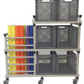 Monté sur 6 roues en polyamide avec une bande en caoutchouc anti-bruit et non marquante, dont 2 roues avec un système de frein.