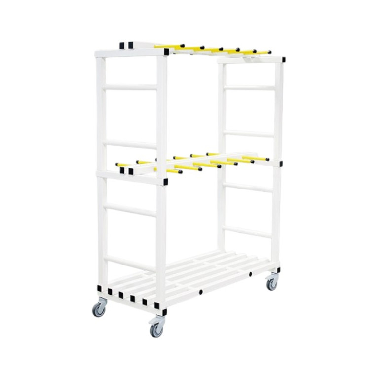 Dispose de 2 rangés composées de 12 accroches. Structure permettant un séchage efficace des équipements.