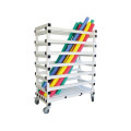 Monté sur 4 roues en polyamide avec bande en caoutchouc anti-bruit et non marquante, dont 2 roues avec un système de frein.