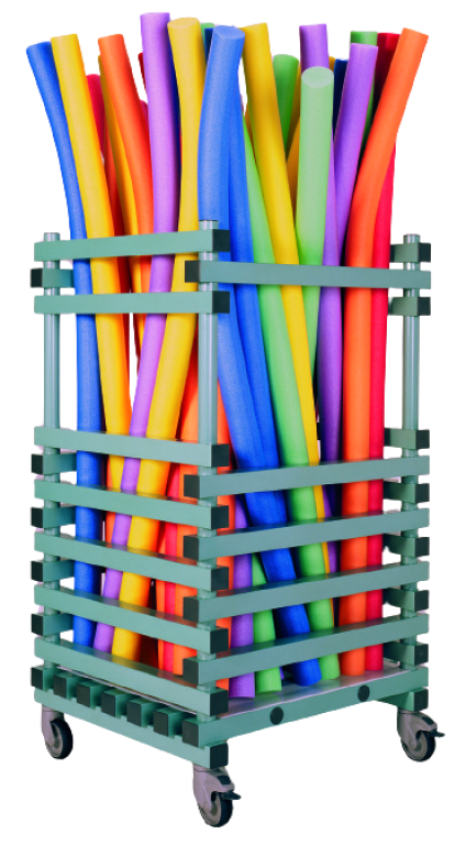 Monté sur 4 roues en polyamide avec une bande en caoutchouc anti-bruit et non marquante, dont 2 roues avec un système frein.