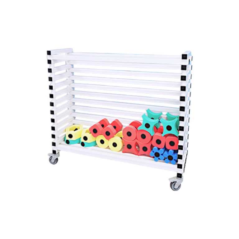 Chariot idéal pour stocker jusqu'à 50 paires d'haltères de piscine.