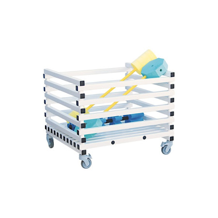 Monté sur 4 roues en polyamide avec une bande en caoutchouc anti-bruit et non marquante, dont 2 roues avec un système de frein.