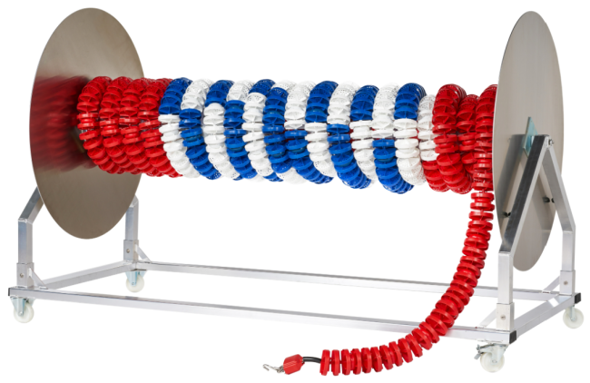 Chariot conçu pour contenir 6 lignes de nage Ø 150 mm de 25 m ou 12 lignes de nage Ø 100 de 25 m.