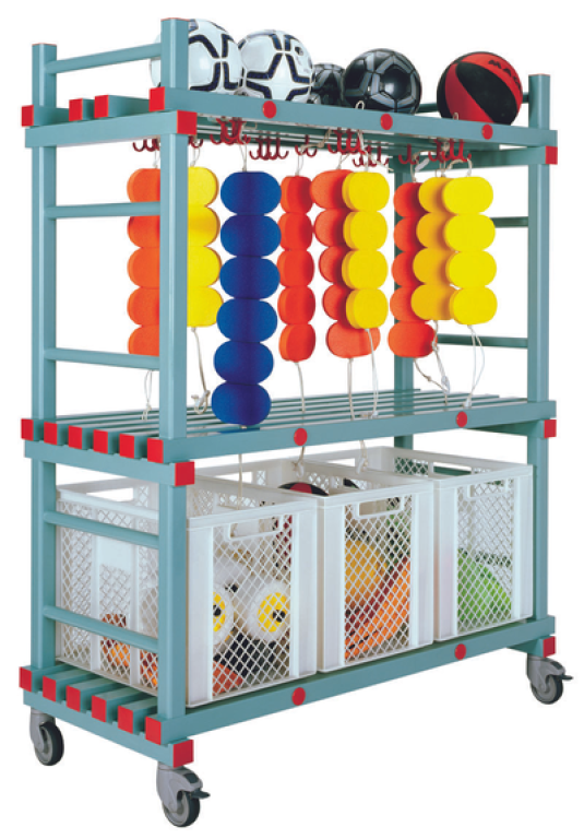 Chariot porte-équipements idéal pour suspendre brassards et ceintures, et ranger tous types de matériel.