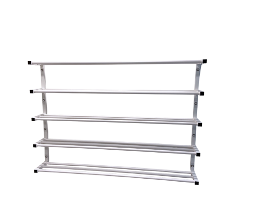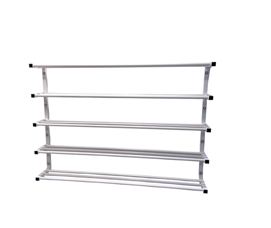 Étagère murale, fabriquée par La Piscine Collective, idéale pour ranger les chaussures à l'abri de l'eau. Dispose de 5 étages espacés de 30 cm.
