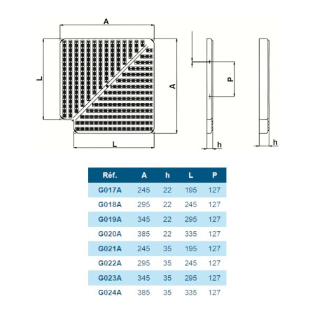Grille d'angle 90° perpendiculaire 22 mm