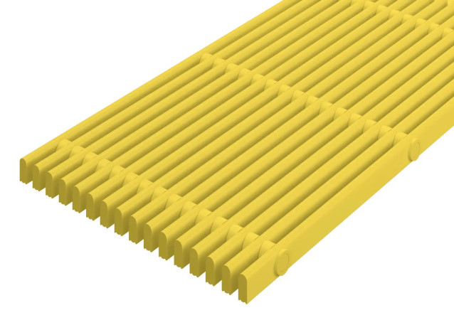 Grille de débordement rigide et parallèle en segment de 1 m. Profilés avec une surface arrondie, de 22 x 10 mm, et espacés de 8 mm.