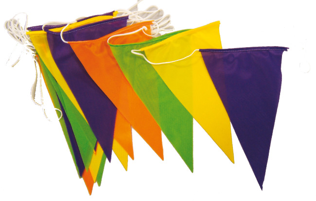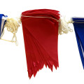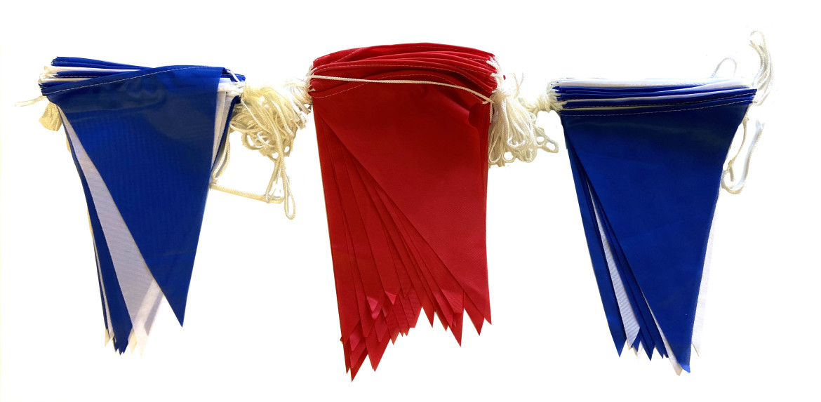 Banderole de virage dos avec fanions triangulaires ou rectangulaires cousus sur drisse blanche.