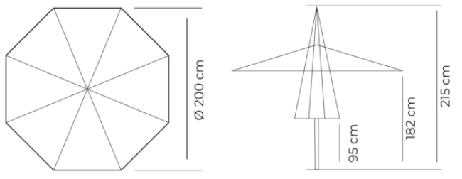 Inclinable, et constitué d'un mât et de 8 baleines Ø 3,8 mm en aluminium blanc, offrant une fermeté et une bonne résistance aux intempéries.
