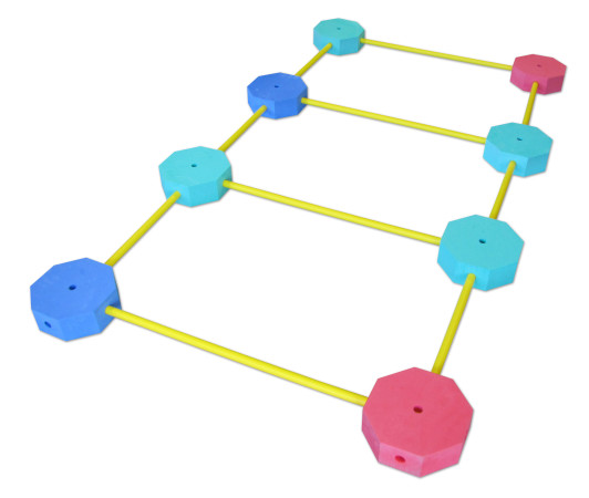 Parcours flottant constitué de 8 flotteurs octogonaux, de 4 barres de 100 cm et de 6 barres de 60 cm.