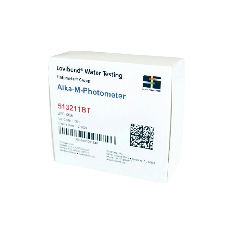 La tablette photométrique Alka-M est utilisée dans les photomètres et les spectrophotomètres. Il suffit d'ajouter la pastille à l'échantillon d'eau, de l'écraser avec le bâton d'agitation, d'attendre le changement de couleur et de l'analyser avec l'appareil de mesure.
