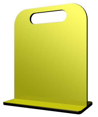 Conçu par La Piscine Collective, ce panneau est en stratifié compact et est facilement transportable avec sa poignée ouverte.