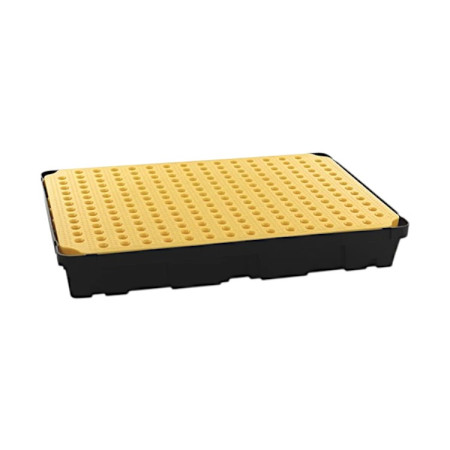 Plateforme de rétention avec caillebotis antidérapant pour le stockage, le transport ou le soutirage sans risque pour la sécurité et la santé du personnel. Protège contre tout écoulement ou fuites de contenants.