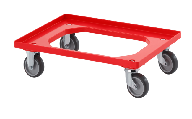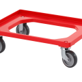 Plateau roulant monté sur 4 roues en caoutchouc, dont 2 pivotantes.