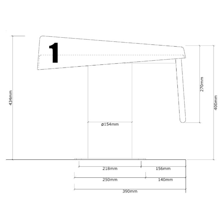 Plot de départ avec une base ronde en inox 316L haute de 40 cm et une plateforme en fibre de verre antidérapante de 50 x 50 cm. Spécialement conçue pour les margelles étroite.