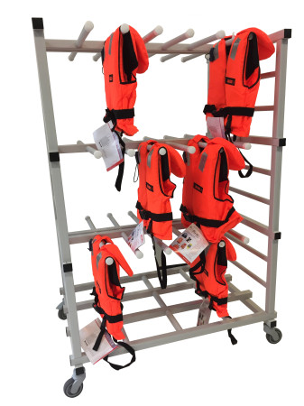 Fabriqué par La Piscine Collective, ce portant est idéal pour ranger jusqu'à 36 gilets de sauvetage.