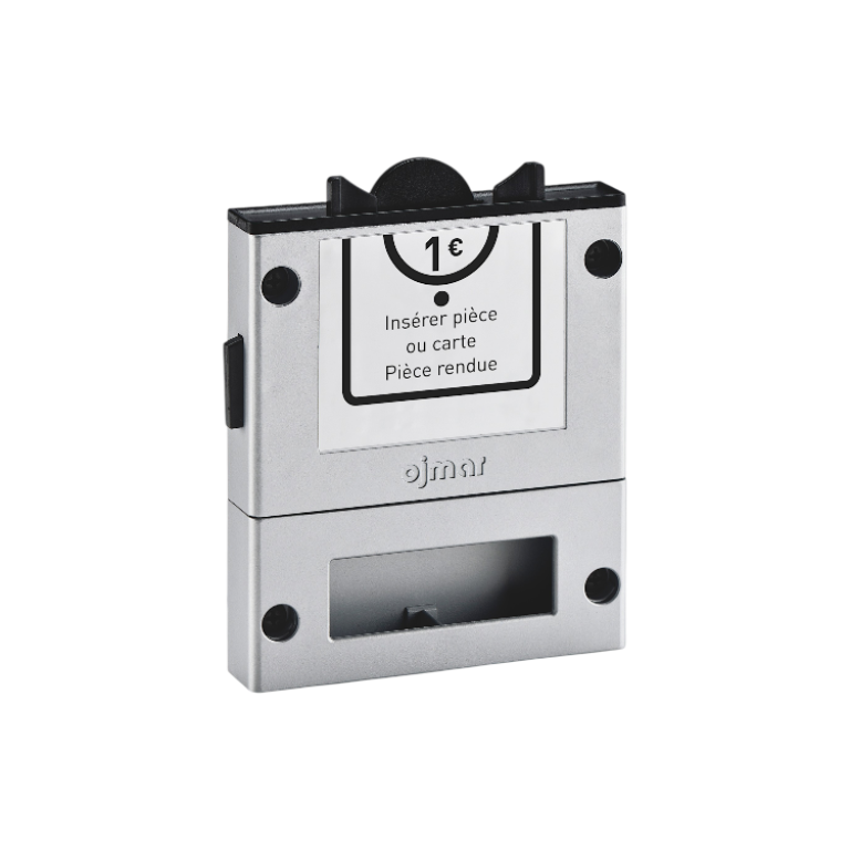 Serrure de sécurité permettant de combiner cartes (pour les membres) et pièces de 1 € (pour les utilisateurs occasionnels).