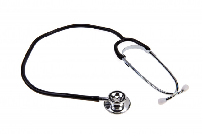 Instrument médical acoustique servant lors de l'auscultation pour écouter les battements de coeur, les murmures respiratoires ou le frémissement artériel.