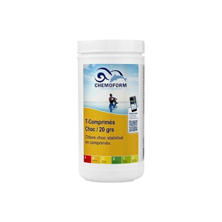 Chlore choc stabilisé en comprimés 20 g. 50% de chlore actif.
