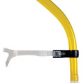 Se place dans l’alignement bouche/nez et est maintenu via un support qui s’appuie sur le front. Passant frontal ajustable et facile à régler. Soupape de purge permettant d'évacuer l'eau du tuba sans qu'elle n'y entre.